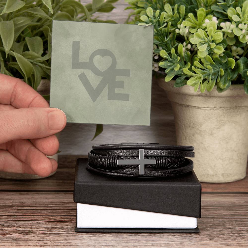 Gift the enduring symbol of faith and love with our Men's Cross Bracelet, thoughtfully paired with a message card bearing the word 'Love.' A meaningful gesture to express your sentiments and celebrate the cherished bonds in his life.