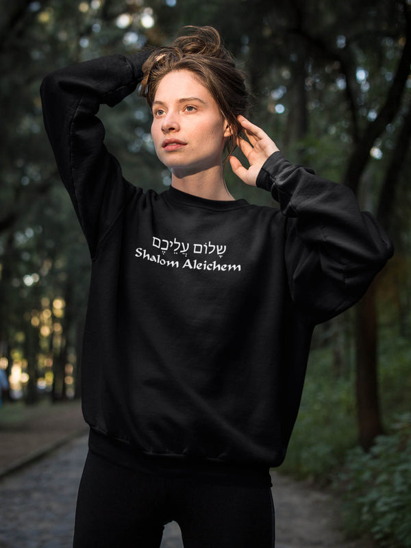 Rock a classic sweatshirt silhouette with ribbed crew neck, long sleeve cuffs, and a flat hem. Rock it even more with our design, Shalom Aleichem, "peace be unto you," written in English and Hebrew. Layer it up or wear it on its own for a contemporary streetwear look. With the soft fleece inside and comfortable fit, it’s sure to become your favorite everyday sweater right away!
