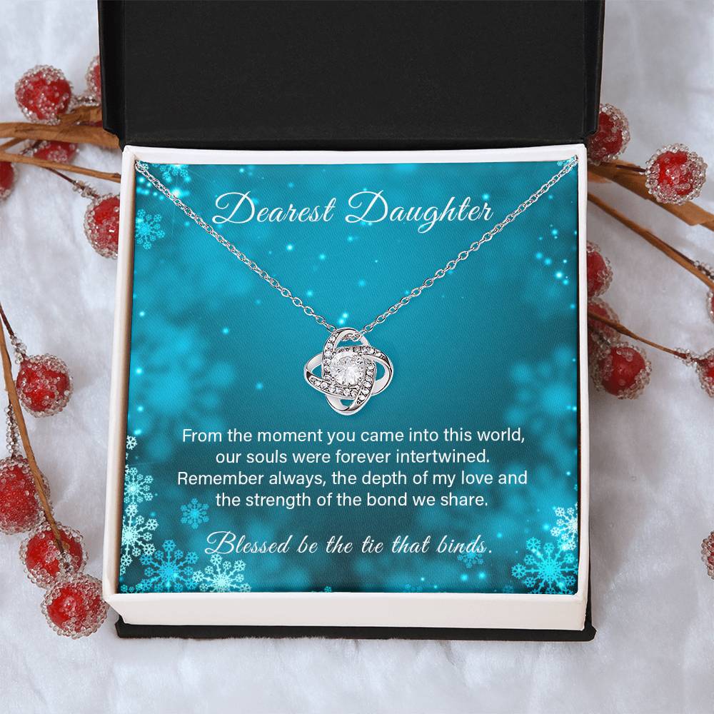 Message Card for DAUGHTER with Holiday theme. Dearest Daughter. From the moment you came into this world, our souls were forever intertwined. Remember always the depth of my love and the strength of the bond we share. Blessed be the tie that binds.