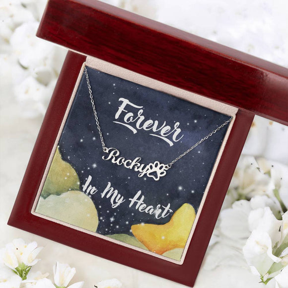 PPNMEM1-Forever In My Heart Name Necklace with Paw Print